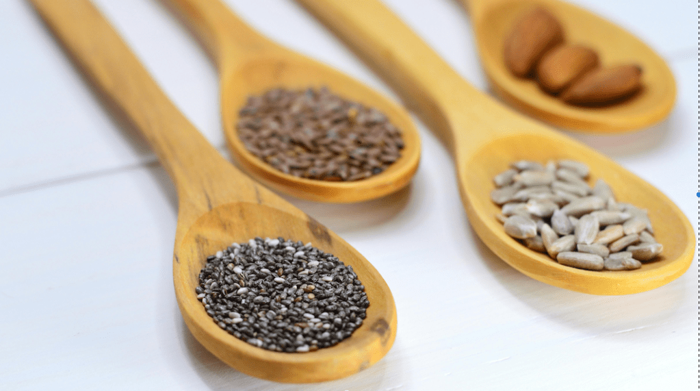 Follicular phase (weeks 1/2): Eat 2TBS of ground pumpkin seeds and flaxseeds to improve the regulation of oestrogen and progesterone production and enable removal of excess oestrogen. Flaxseeds contain lignans which bind to excess oestrogen for removal via the liver. Pumpkin seeds contain zinc which help to promote progesterone production in preparation for the luteal phase (weeks 3/4).