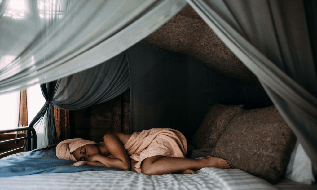 Learning to de-stress and deep breathe will significantly aid sleep by lowering cortisol levels and pulling in the parasympathetic nervous system, telling your body you’re safe, calm and ready to rest. There are many sleep meditations online such as Yoga Nidri which will help you to deep breathe, focus on your breath and relax into a deep sleep. Reducing stress is key to good sleep. When we are stressed, cortisol levels are raised which will prevent your nervous system calming down, enabling your body going into safe and healing mode.